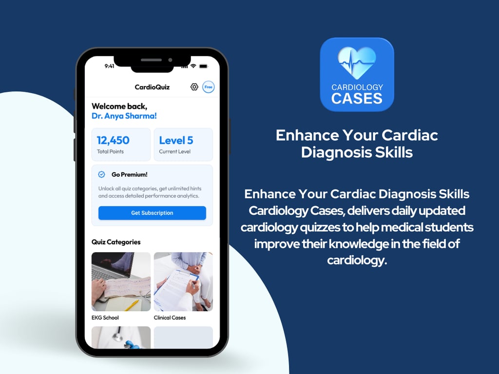 Cardiology Cases, tıp ögrencilerinin kardioloji alanında kendilerini gelistirebilmeleri icin günden güne yeni eklenen kardioloji quizlerini kullanıcılarına ulaştırıyor.