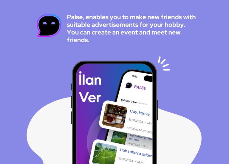 Palse, hobinize uygun ilanlar ile yeni arkadaslar edinebilmenize olanak saglıyor. Bir etkinlik oluşturabilir ve yeni arkadaslarınız ile tanışabilirsiniz.